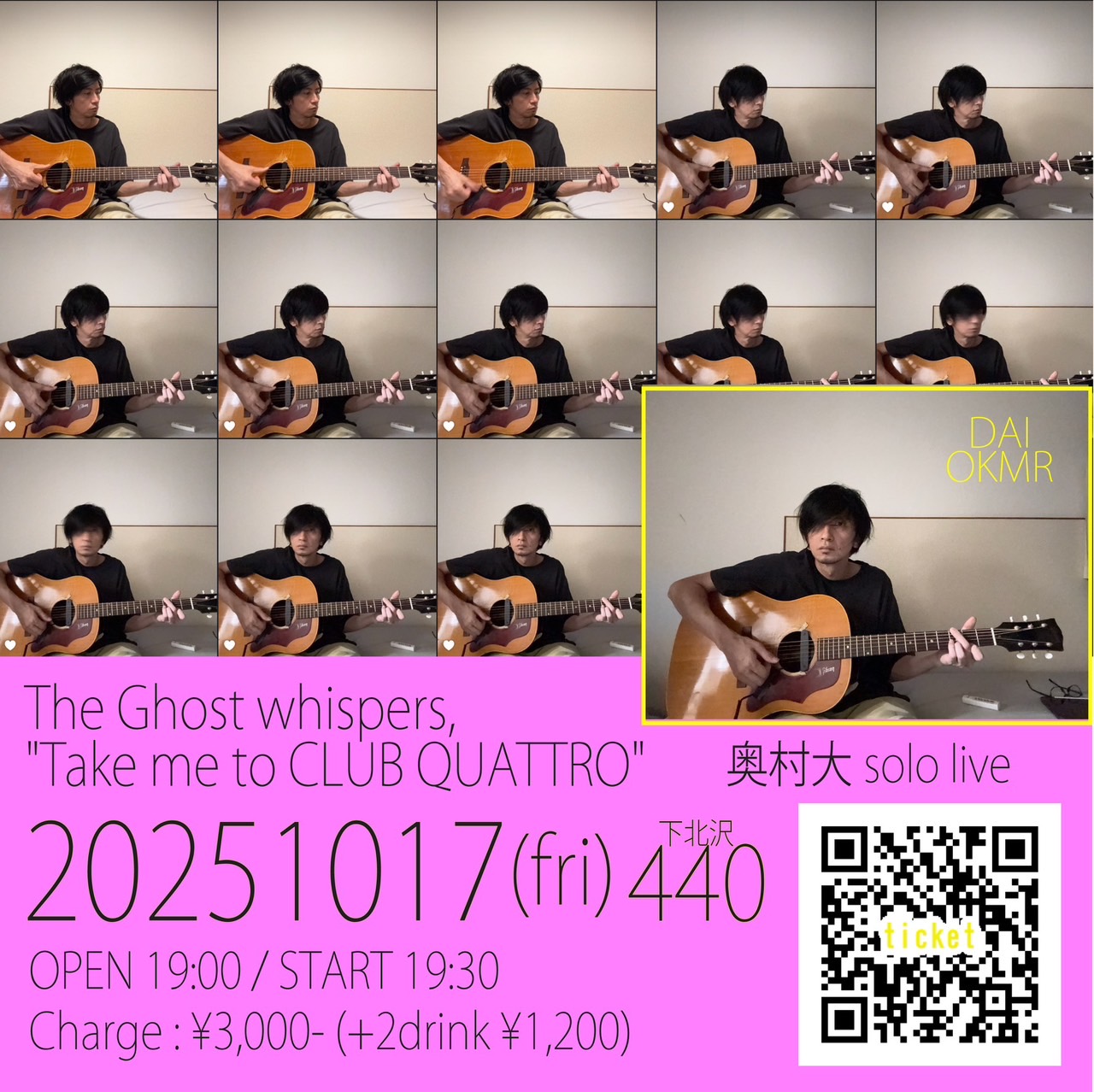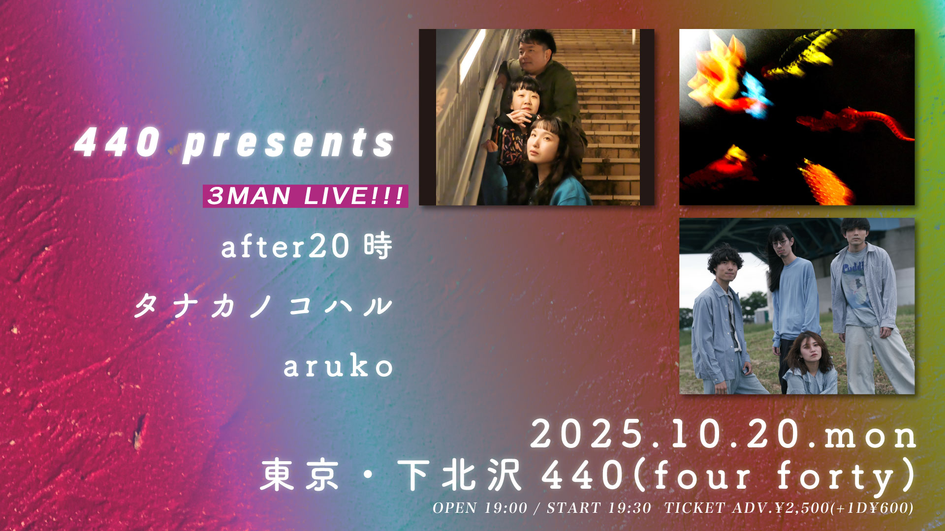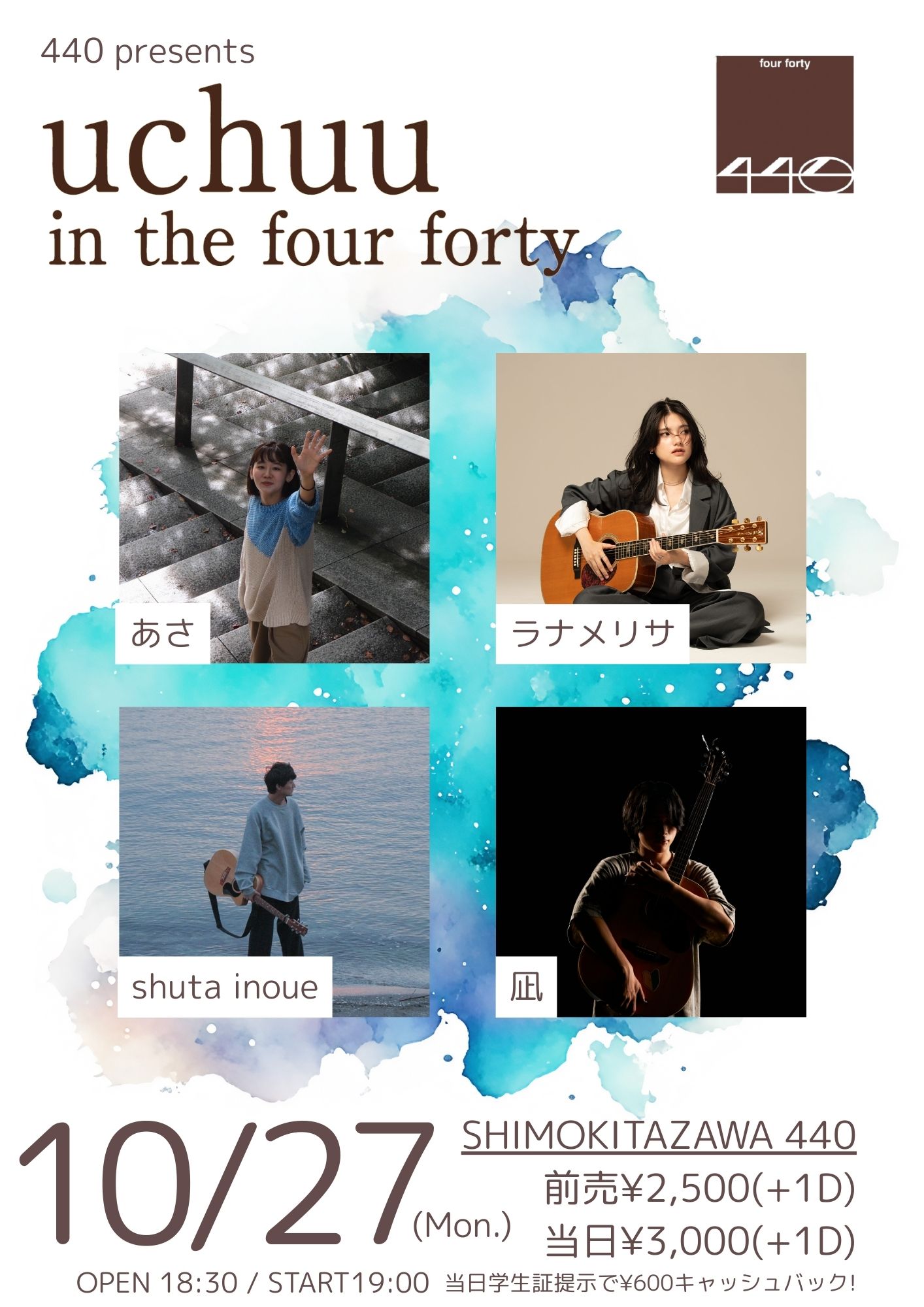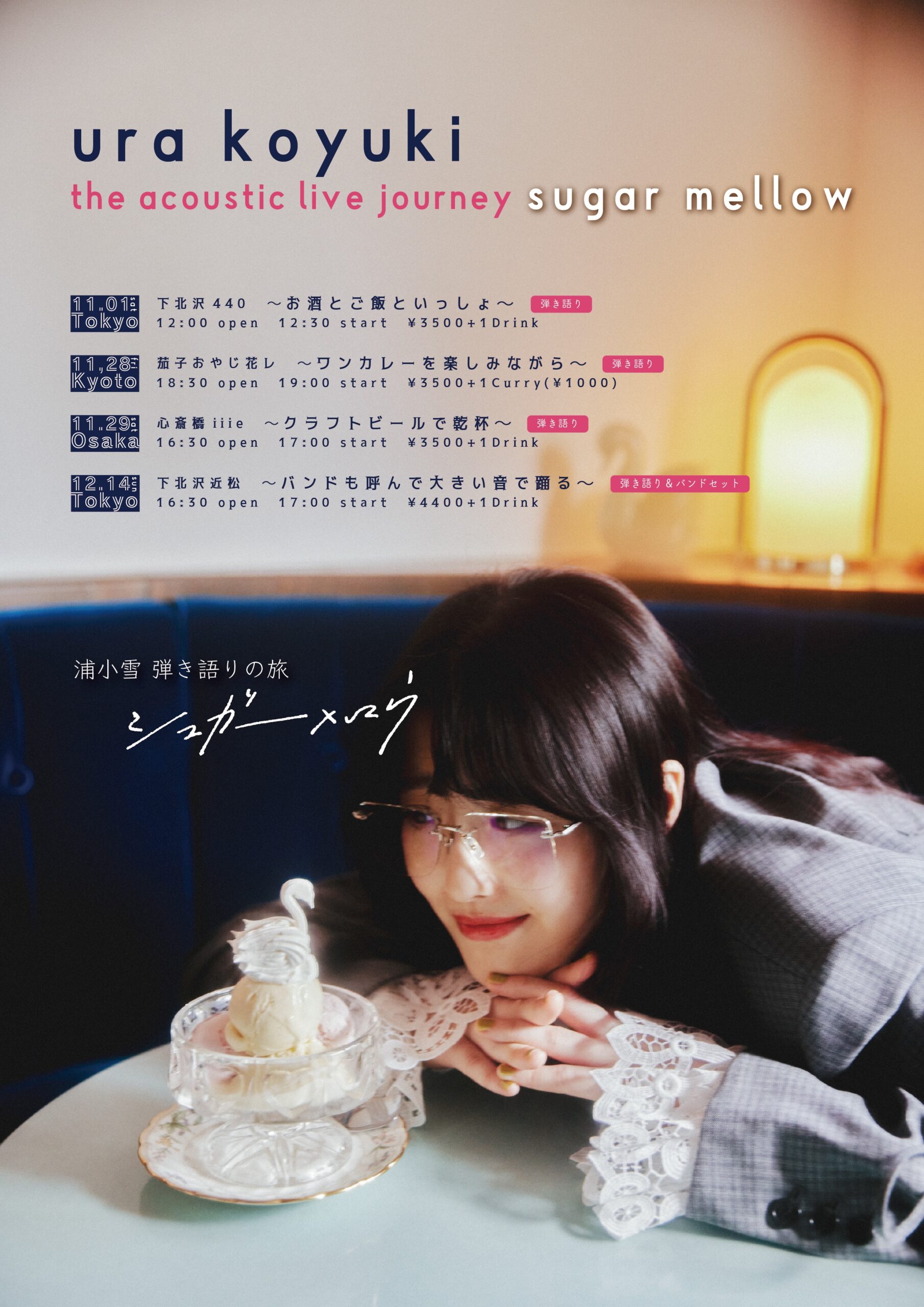 配信有り中川敬・音曲渡世ひとり旅2025<東京・秋篇>~ソウルフラワー中川敬の弾き語りワンマン・ライヴ!中川敬(ソウル・フラワー・ユニオン) OPEN 17:30 / START 18:00 CHARGE : 前売 ¥4,000- / 当日 ¥4,500- (+1D) 学割チケット前売り¥2,000(ドリンク別/税込) / 当日¥2,500(ドリンク別/税込)/配信チケット¥3000 TICKET:TIGET→7/29 10:00 配信TICKET:https://twitcasting.tv/440_fourforty/shopcart/386539 【特記事項】 ※中学生以下は入場無料。(保護者同伴でご入場ください) ※学割チケットは高校生・大学生の方が対象となります。(学生証をご持参ください。ご入場順につきましては、一般チケットの整理番号をお持ちの方の後になります。一般チケットをお持ちの方と同伴の場合はご一緒にご入場できます。) ※「託児所」等お子様をお預かりする施設、スタッフ等はご用意しておりません。公演中はお子様から目を離さないようご注意ください。 ※付き添いが必要な障がい者の方に限り、介護の方1名は入場無料とさせていただきます。(障がい者手帳を必ずご持参下さい) ※会場内での録音・撮影は一切禁止とさせていただきます。 ※当日はライブ配信を行うため、会場の最後方とステージ両脇にカメラマンの撮影スペースがございます。 ステージ脇のカメラマンが立ち上がることはございますが、お客様とステージの間を遮るようなことの無いように努めます。 |