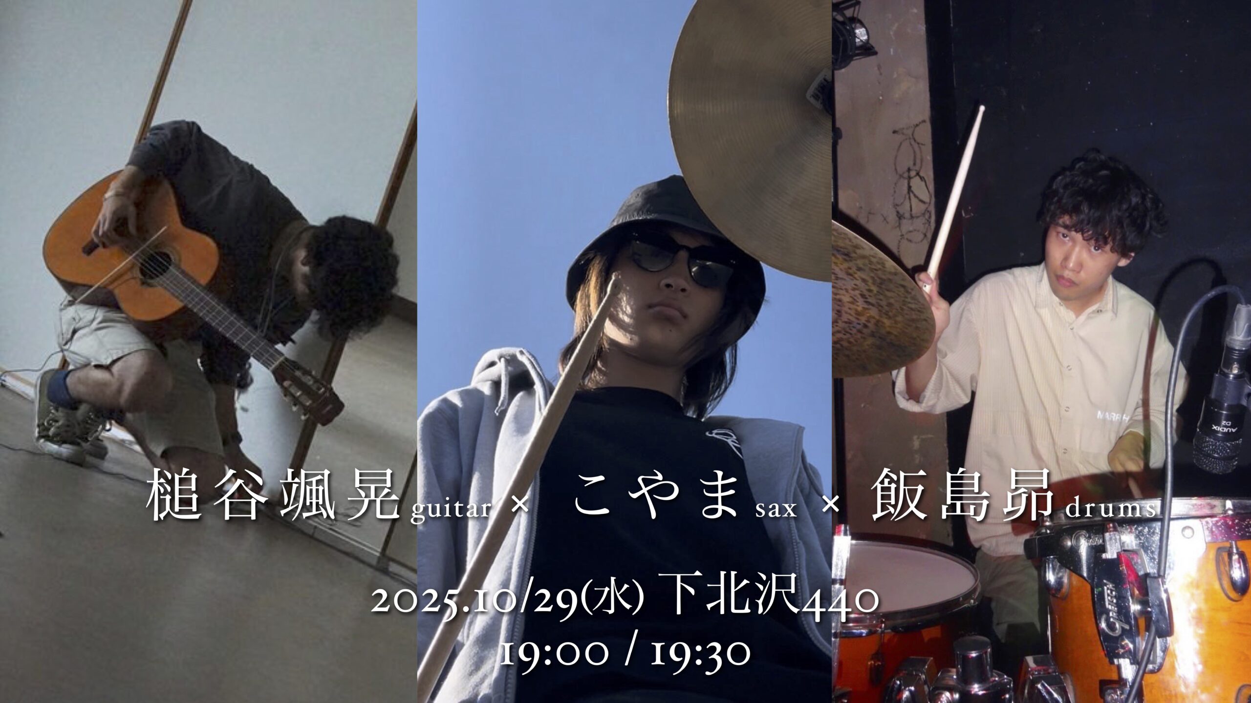 出演:槌谷颯晃(guitar)/こやま(sax)/ 飯島昴(drums)