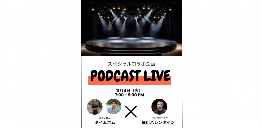 スペシャルコラボ企画!タイムボム(Nick兄さん✖️高桑) & 細川バレンタインと行うトークライブ!