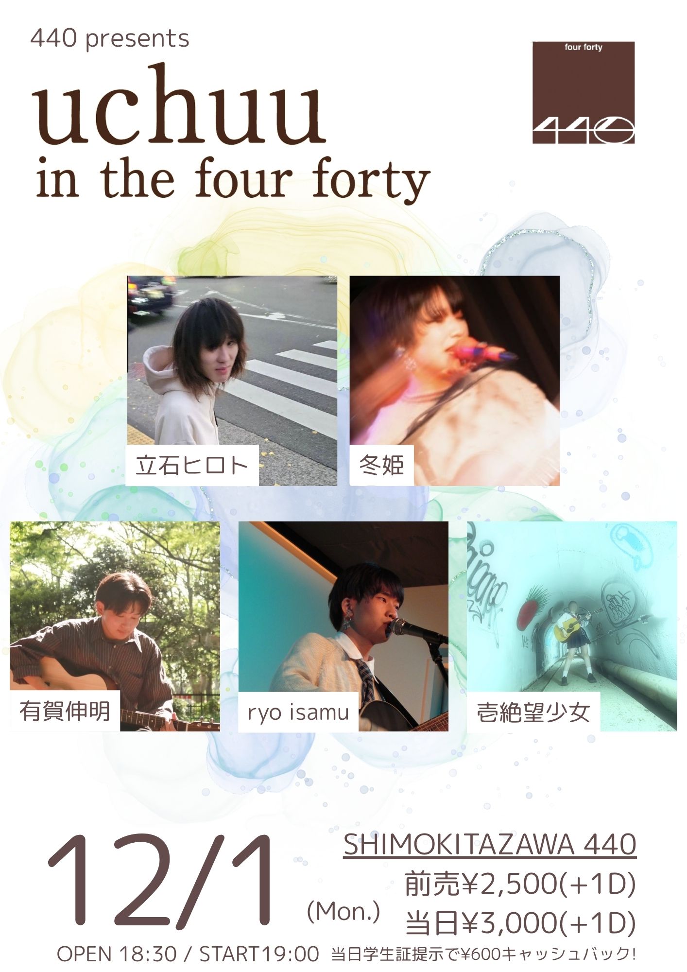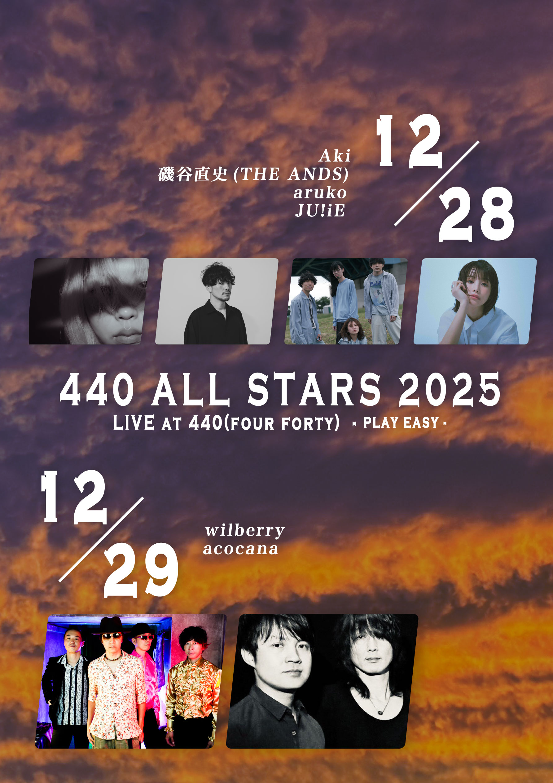 TICKET:TIGET→10/10 10:10 毎年3月に440(four forty)にて開催している「開運!占いLIVE」より、年末の厄落としライブの開催が決定。 ご来場の皆さんの2025年厄落とししたいことを、エミさんとGRACEさんの即興開運ソングで厄払い! GRACEさんと繭由怜佳さんによる2026年を幸運に過ごすトークライブもあり、 山田うんさんの開運体操をみんなで一緒に体を動かして、 うどん県在住の行天裕子がうどん県の楽しいうどん旅のススメ、など。 また会場内にて、 繭由怜佳さんのミニ占い(15分2000円)、石渡美佳さんのミニマッサージ(10分1000円) 石渡美佳さんの作る精麻のアクセサリーやパロサントのツボ押し棒の販売、 プププ商店さんの手作りの開運グッズ販売、 Tomock’s Deliさんの開運厄落としフードのブースなど、盛りだくさんです! ご来場の皆さんには、GRACEさんから一言おみくじと星座別開運カードをプレゼント。 笑う角には福来る!笑顔で明るい新春を迎えましょう~! |