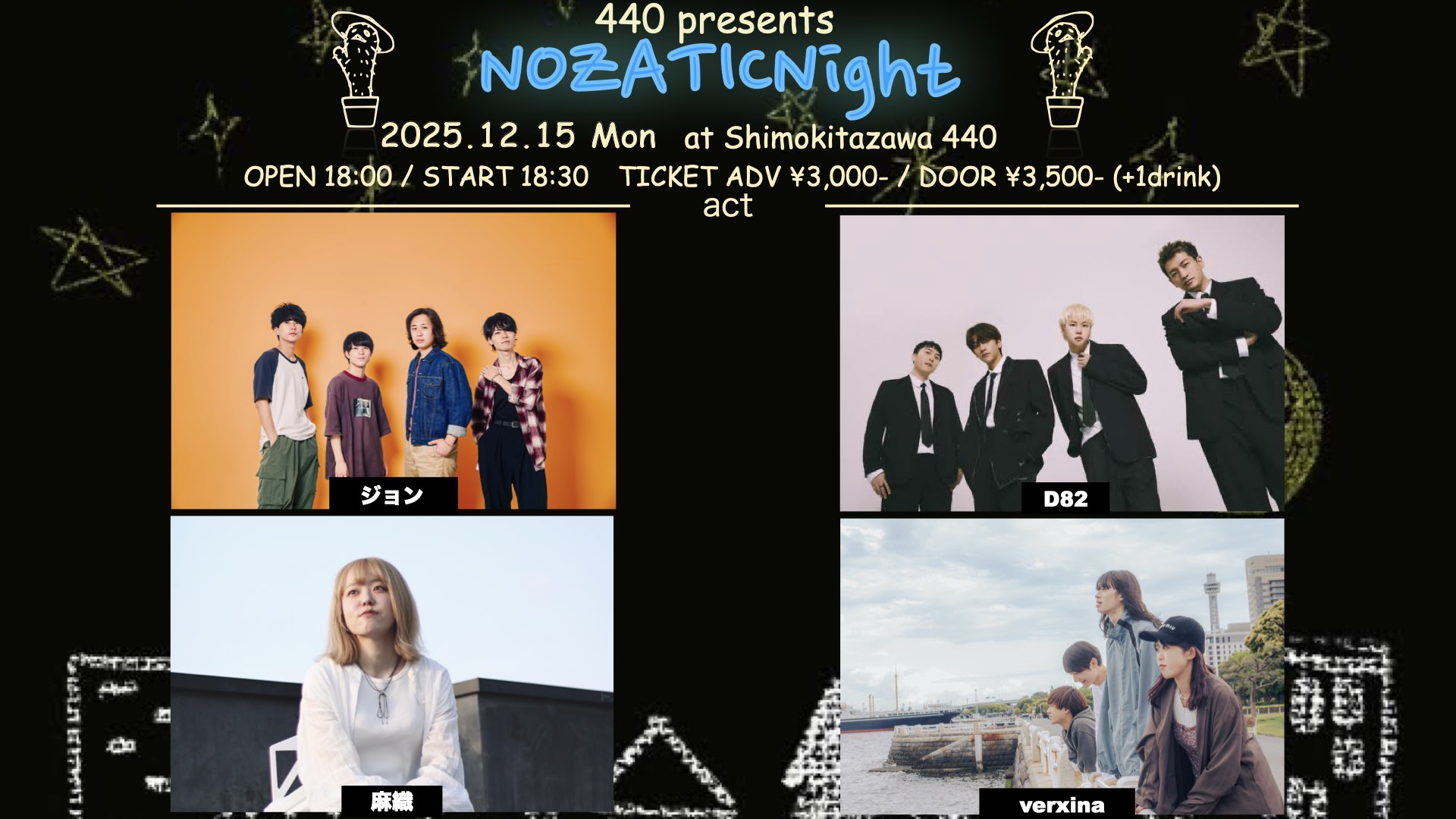 “開運!占いLIVE” presents『2025 年忘れ厄落としLIVE』エミ・エレオノーラ (pf., ソングライティング)/GRACE (ds., ソングライティング、占い)/行天裕子 (総合司会、うどん県)/GUEST:山田うん (振付師、開運体操)/繭由怜佳 (東洋占星術、トークと占い)/石渡美佳 (精麻製品の販売、マッサージ)/プププ商店 (開運グッズ)/Tomock’s Deli (開運、厄落としフード) OPEN 18:00 / START 19:00 CHARGE : 前売 ¥3,500- / 当日 ¥4,000- (+1D)
