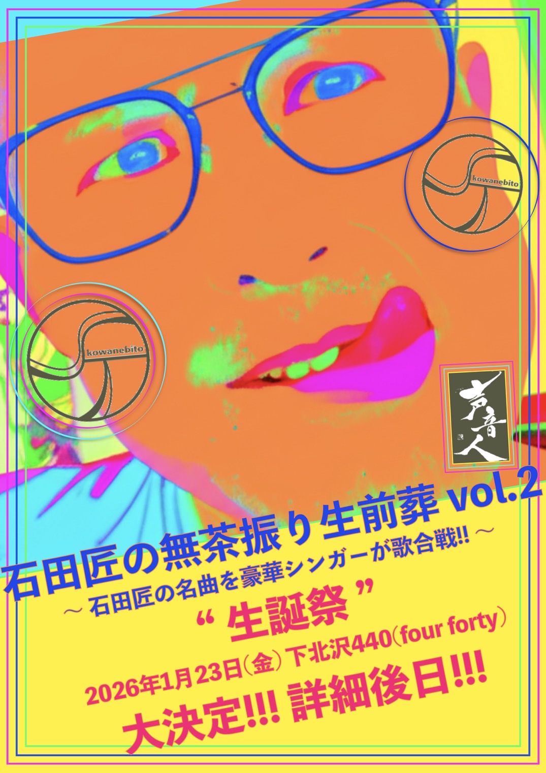 TICKET:TIGET→10/10 10:10 毎年3月に440(four forty)にて開催している「開運!占いLIVE」より、年末の厄落としライブの開催が決定。 ご来場の皆さんの2025年厄落とししたいことを、エミさんとGRACEさんの即興開運ソングで厄払い! GRACEさんと繭由怜佳さんによる2026年を幸運に過ごすトークライブもあり、 山田うんさんの開運体操をみんなで一緒に体を動かして、 うどん県在住の行天裕子がうどん県の楽しいうどん旅のススメ、など。 また会場内にて、 繭由怜佳さんのミニ占い(15分2000円)、石渡美佳さんのミニマッサージ(10分1000円) 石渡美佳さんの作る精麻のアクセサリーやパロサントのツボ押し棒の販売、 プププ商店さんの手作りの開運グッズ販売、 Tomock’s Deliさんの開運厄落としフードのブースなど、盛りだくさんです! ご来場の皆さんには、GRACEさんから一言おみくじと星座別開運カードをプレゼント。 笑う角には福来る!笑顔で明るい新春を迎えましょう~! |